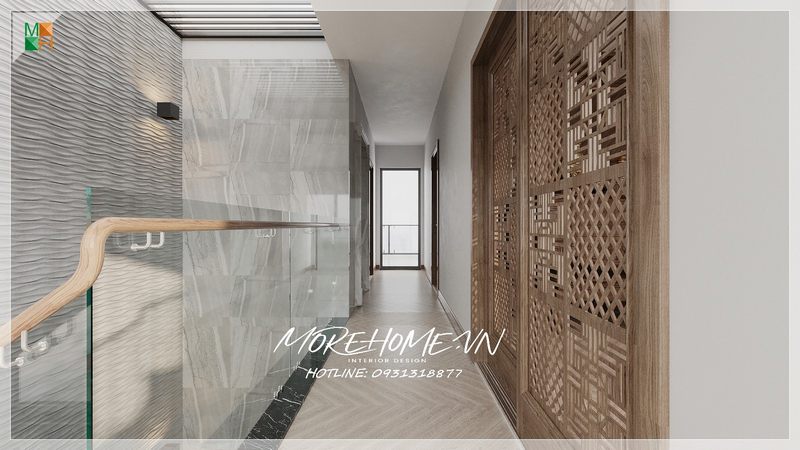 Hành lang của căn hộ biệt thự, nhà phố được trang trí đơn giản, không quá cầu kì, là lối đi dẫn đến các phòng trong căn hộ.