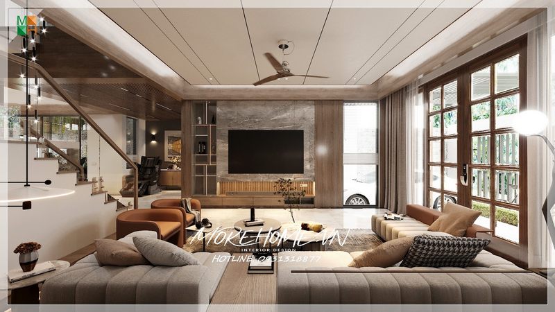 Thiết kế hành lang tầng lối đi chung của các không gian phòng với nhau một mạch ngầm đoàn kết, mang ý nghĩa phong thủy riêng cho không gian nhà
