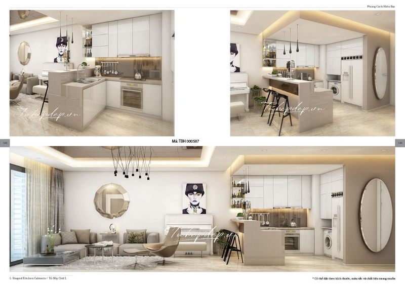 Tủ bếp chữ L được thiết kế để phù hợp với cả phần bếp nấu và khu vực xơ chế rửa thực phẩm, giúp cho việc nấu nướng và dọn dẹp trở nên dễ dàng hơn.