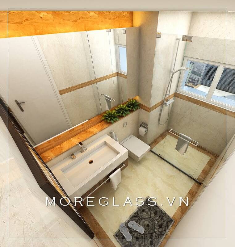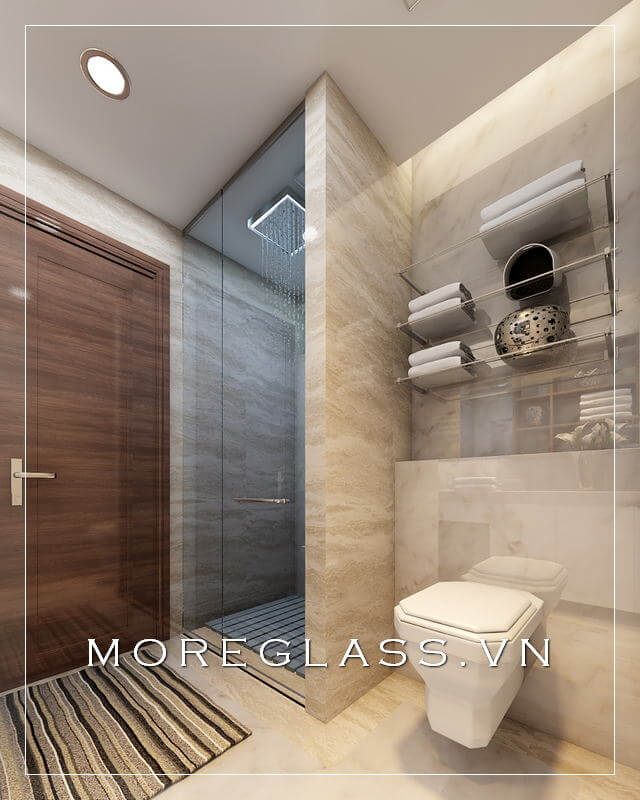 Vách kính cường lực được ưa chuộng và sử dụng rộng rãi trong thiết kế phòng tắm và nhà vệ sinh nhỏ đẹp.
